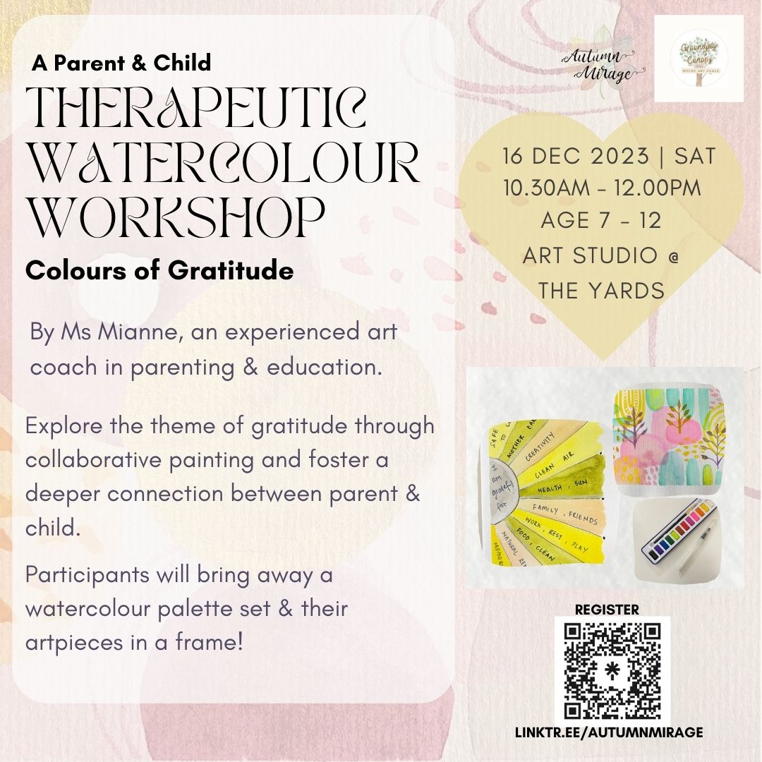 Explore the theme of gratitude through collaborative painting and foster a deeper connection with your child at this Therapeutic Watercolour Workshop.