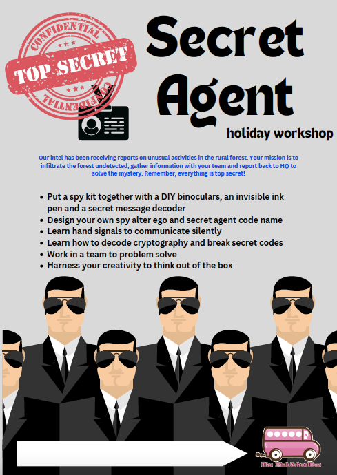 Calling all young Secret Agents-in-training! Get ready for an EPIC adventure this school holiday at The PinkSchoolBus Holiday Workshop: SECRET AGENT EDITION!