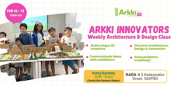 Arkki Innovators is a weekly design and architecture workshop for children aged 10–13. Each session challenges kids to think like young architects, designing future-ready spaces, products and environments that respond to real-world needs.