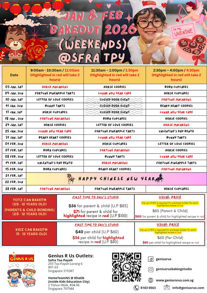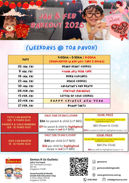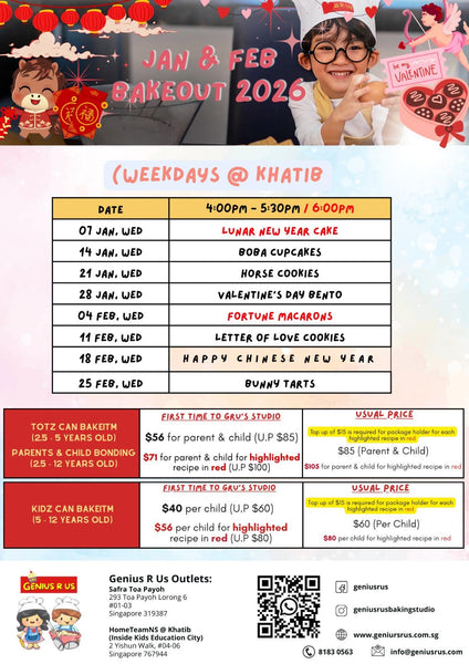 Sign your child up for fun baking workshop this January and February with Genius R Us.