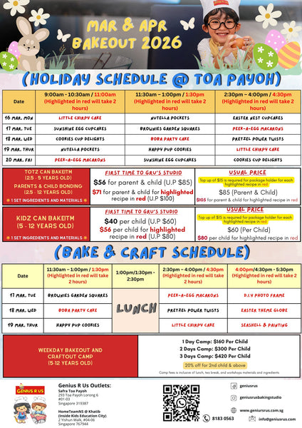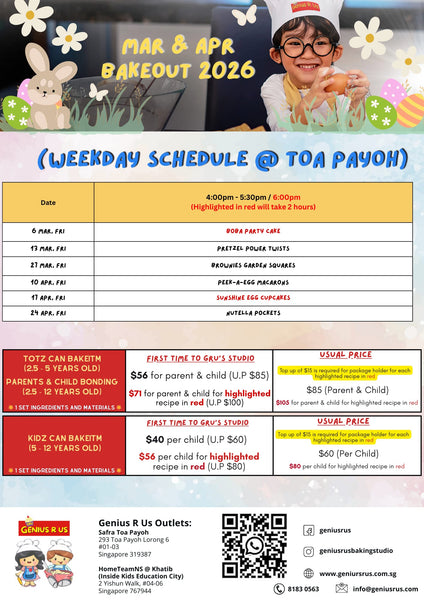 Sign up for a fun Parent and Child Baking Workshop with Genius R Us this March & April. Enjoy yummy bake as you bond with your child.