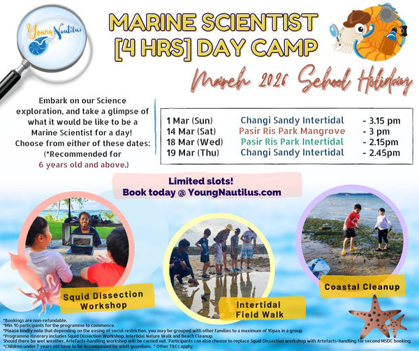 Embark on a 4-hours Marine Scientist Day Camp and let your kids take a glimpse of what it would be like to be a Marine Scientist for a day! The camp includes Squid Dissection Workshop, Intertidal Field Walk and Coastal Cleanup.